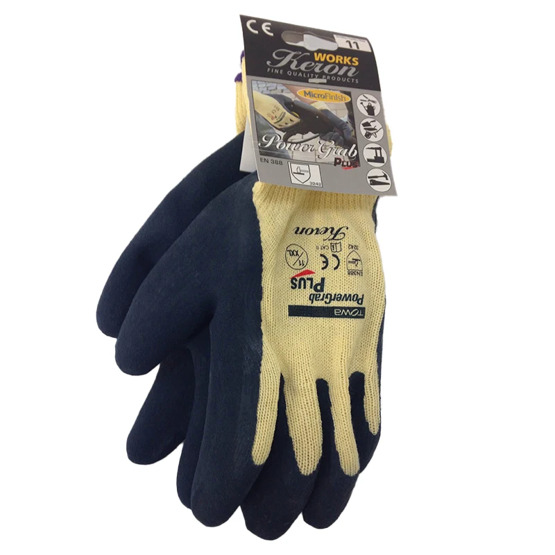 Finely knitted polyester & cotton gloves dipped in latex for added grip and protection. The back of the hands and fingers are free from the latex coating to allow free movement and there is extra protection on the thumb.